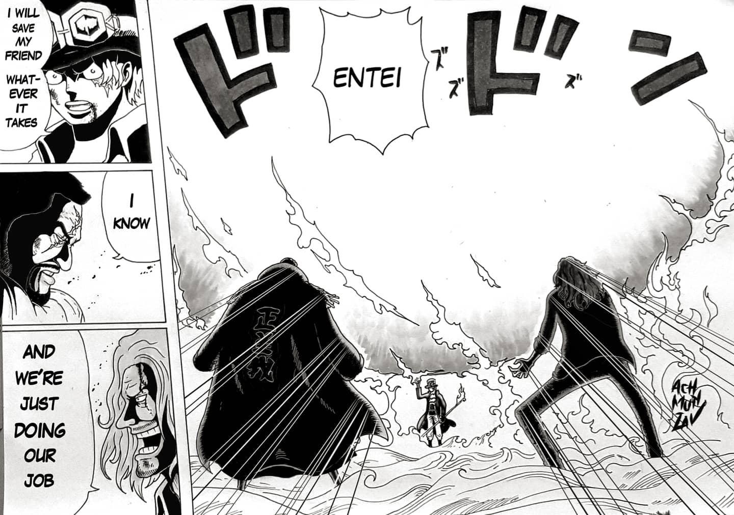 幹掉了天龍人,海軍大將自然不能坐視不理!藤虎和綠牛果然回到瑪麗喬亞保護天龍人!如今爲了阻止薩博也加入到戰鬥中來!面對兩名大將,薩博不敢掉以輕心,直接釋放出【炎帝】大招!