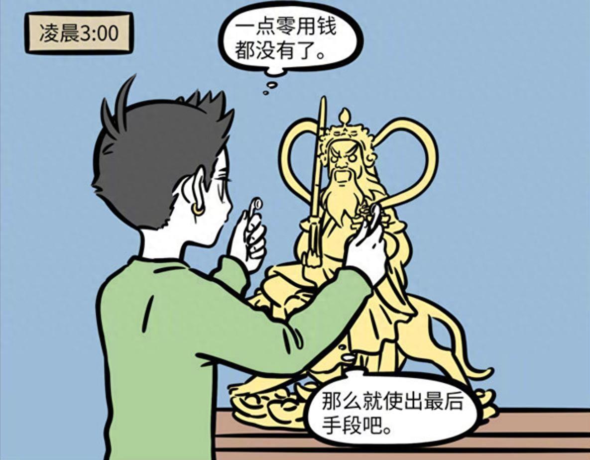 凌晨三點,哪吒突然意識到自己零花錢全部用完,此時自然那不可能伸手向大士拿,因此他將主意打到趙公明身上