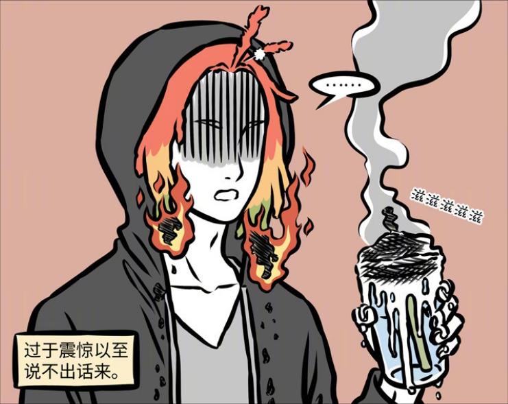 因爲火力過猛,不僅鳳凰的飲料着火,就連鳳凰的頭髮也沾到火苗,開始燃燒起來