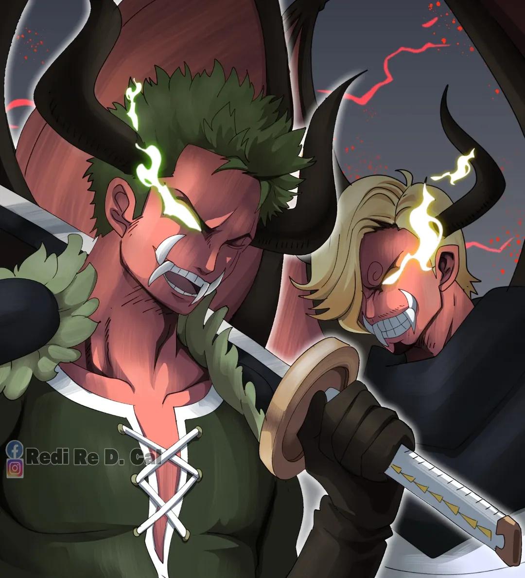 而這樣的話,惡魔版本的索隆、山治就順利出現了!體型直接化身巨人,連刀都一起進化了呢!這樣的索隆山治戰鬥力無疑是暴漲數倍以上。而且此時的他們還擁有不死不滅的能力,相當棘手。