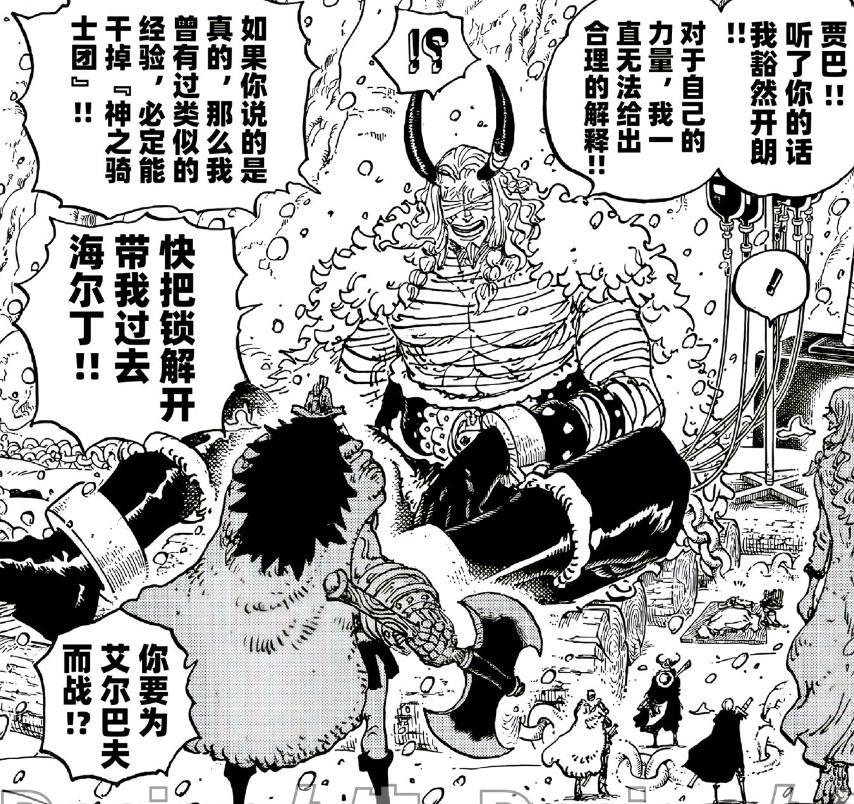 目前海賊王漫畫來到了期待依舊的巨人島艾爾巴夫篇,神祕的老國王哈拉爾德果然是惡魔化了,這也讓他不得不讓士兵們對自己出手,只可惜這股力量是需要霸王色霸氣才能殺死的,爲此,在當年的那一天的城堡裏死傷無數,洛基更是被認定爲弒父的罪人,並喫下艾爾巴夫代代相傳的傳說中的惡魔果實。