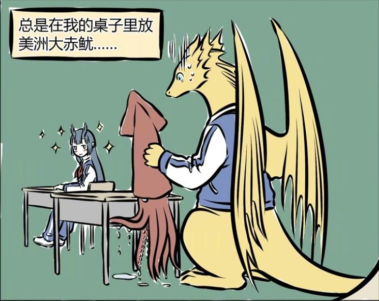 而後英國轉學生還發現,自己的桌子上經常會出現美洲大赤魷,因爲大赤魷體型太大,並且還是從海里面新鮮撈出來,所以導致轉校生的桌子經常溼答答