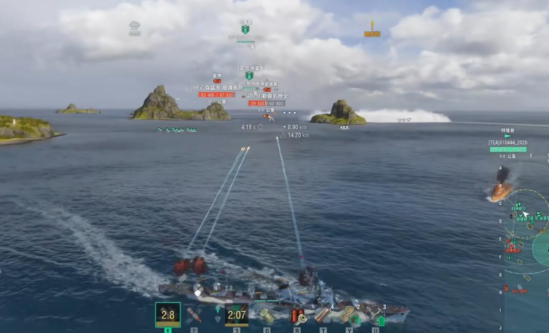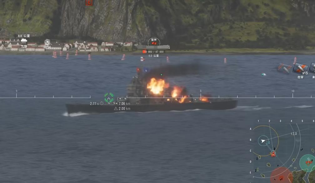 另外不可不提的是,這艘船的AP彈傷害達到2900,346mm的出膛穿深相當優秀,面對戰列艦也能颳得動,而在對付輕巡時,7~10KM的距離射擊對敵人來說可是足以致命的威脅,這也是60倍徑130mm帶來的火力聚變。