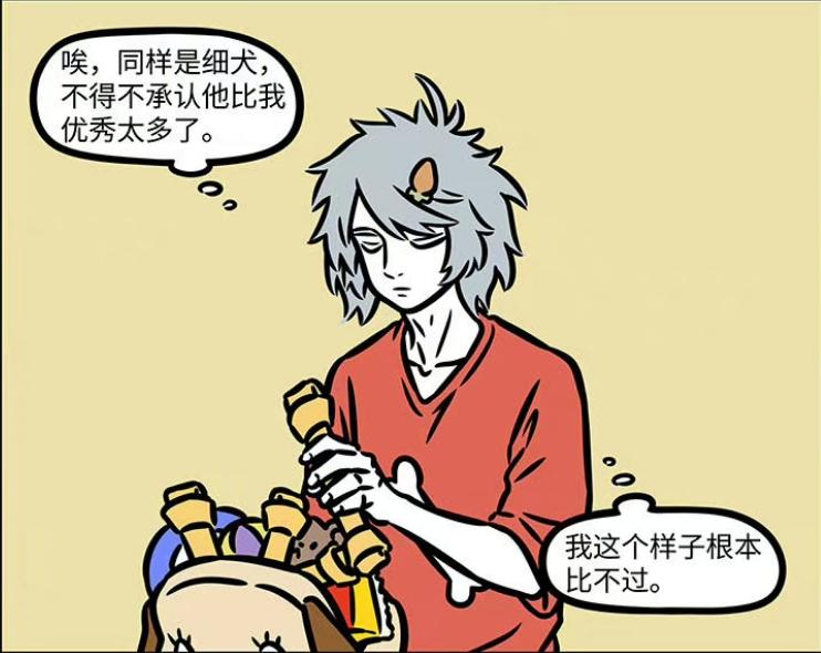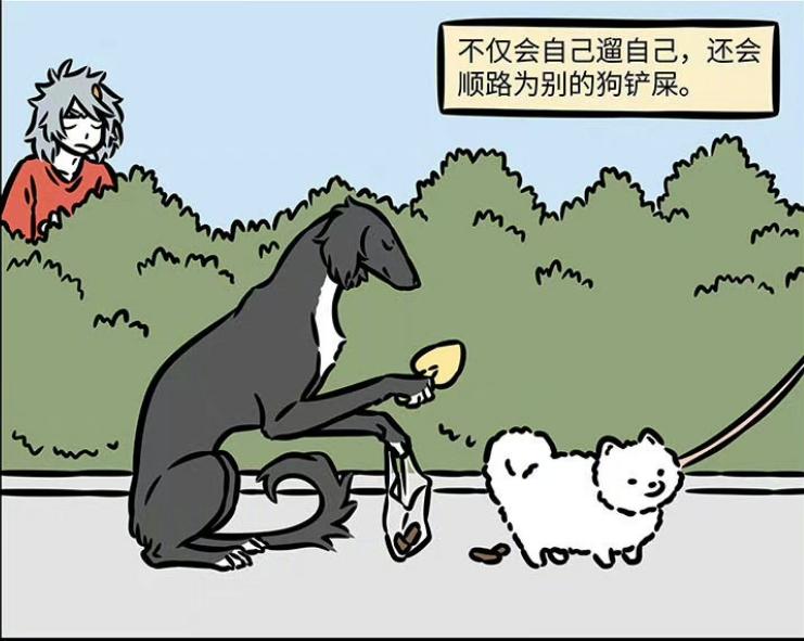 大概是爲了證明自己比黑色細犬更加優秀,所以哮天經常躲在黑色細犬身邊,希望能找到他的一些缺點。