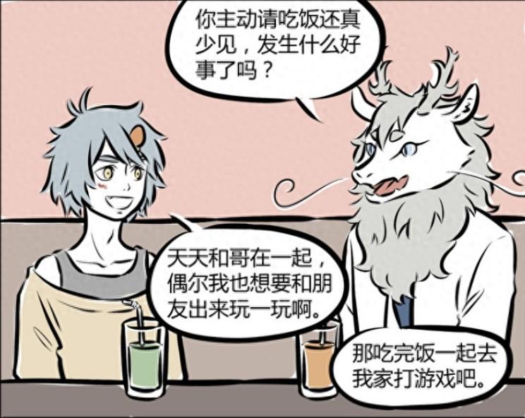 哮天表示自己天天和楊戩待在一起,偶爾也希望和朋友出來玩一玩,所以這一次才主動邀請敖烈喫飯,對於這一理由敖烈欣然接受,甚至表示喫完飯後可以一起去他家打遊戲。