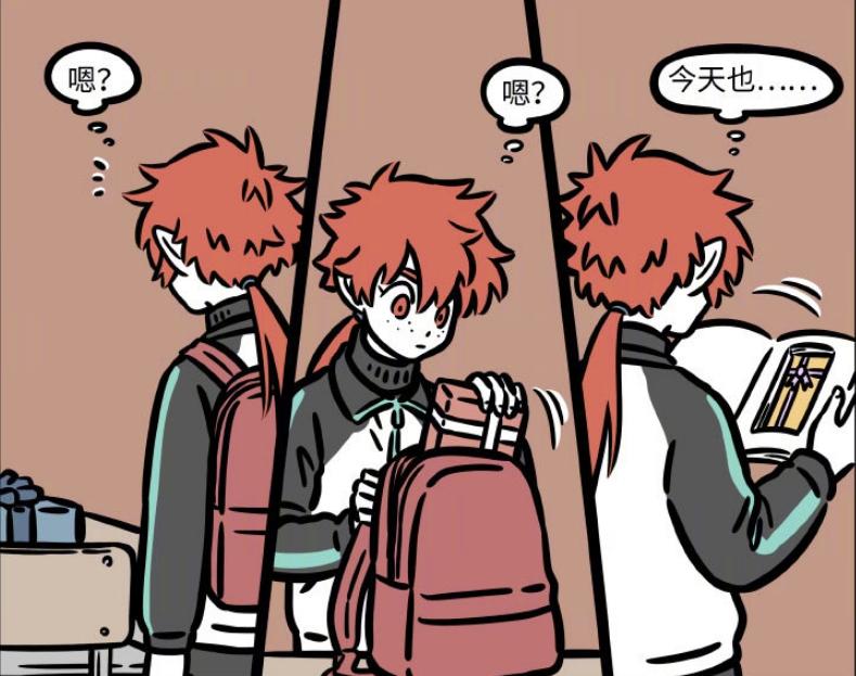 大概因爲雙馬尾妹妹用的是紅色果醬展現自己的名字,所以整塊巧克力看起來多少帶了點恐嚇意味,而紅孩兒似乎也是這麼認爲,看到巨型巧克力的第一瞬間便認爲是有同學準備欺負自己,而且還是實名制欺負那種