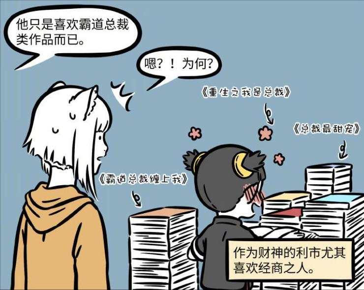 隨後白澤便解釋了利市雖然喜歡看書,但他只鍾愛霸道總裁類的作品。