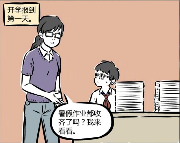 老師就如同以往開學一樣,準備檢查同學們的暑假作業。