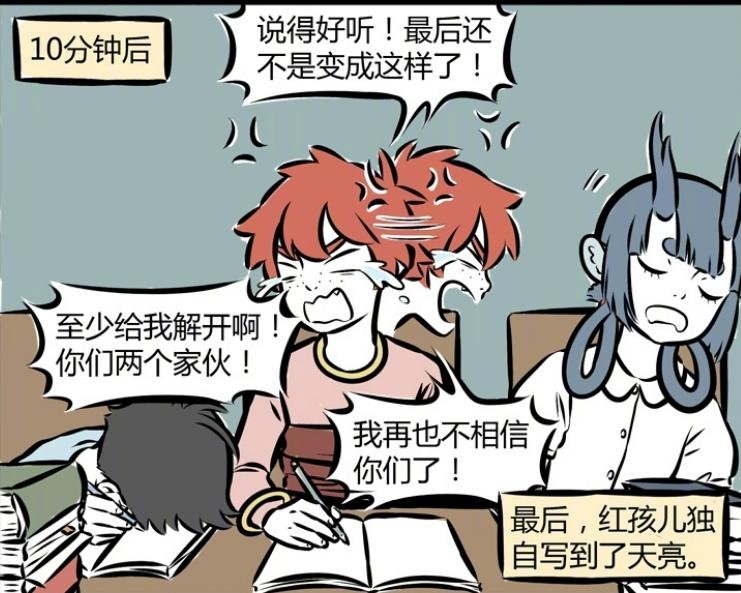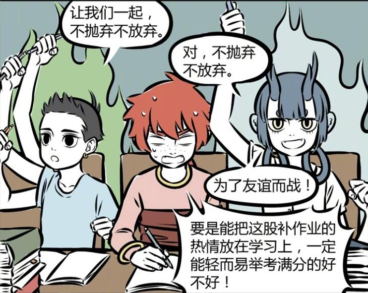 但坐在兩人身邊的紅孩兒卻十分無語,直接表示他們要是能把補作業的熱情用在學習上,他們一定可以輕而易舉獲得滿分的好成績。
