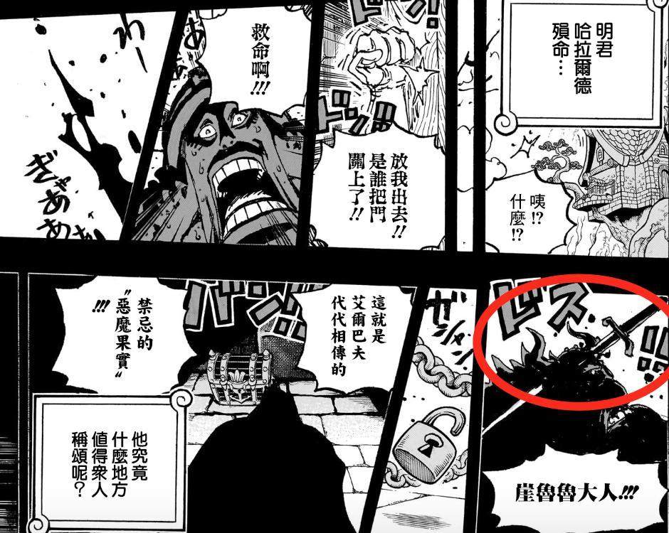 不會吧!香克斯的佩刀·無上大快刀·格里芬居然是伊姆送的!這把刀也有惡魔之力,可以召喚出獅鷲形態!