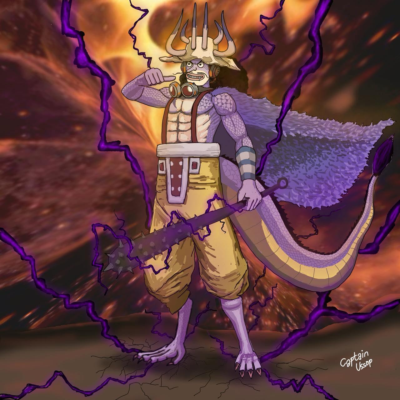 依據海外流出的最新情報,身處巨人島艾爾巴夫的烏索普,意外邂逅了一顆惡魔果實。而這顆果實,正是此前已曝光的動物系魚魚果實幻獸種青龍形態!沒錯,從其龍鱗般的外觀便能判斷,這正是凱多曾擁有的那顆!