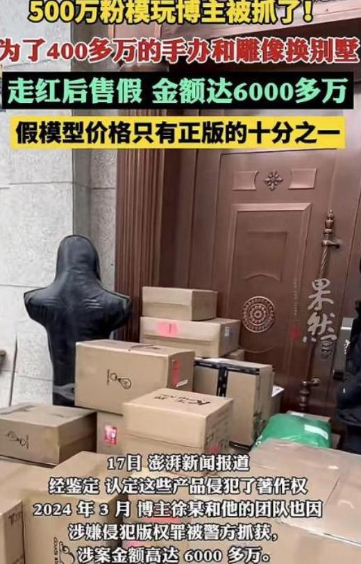 而這種手辦廠家被抓的案例也不是一兩次了,還有一月份的時候,知名博主陽臺哥,就因爲複製銷售盜版手辦,涉案金額高達6000萬,被判刑4年。