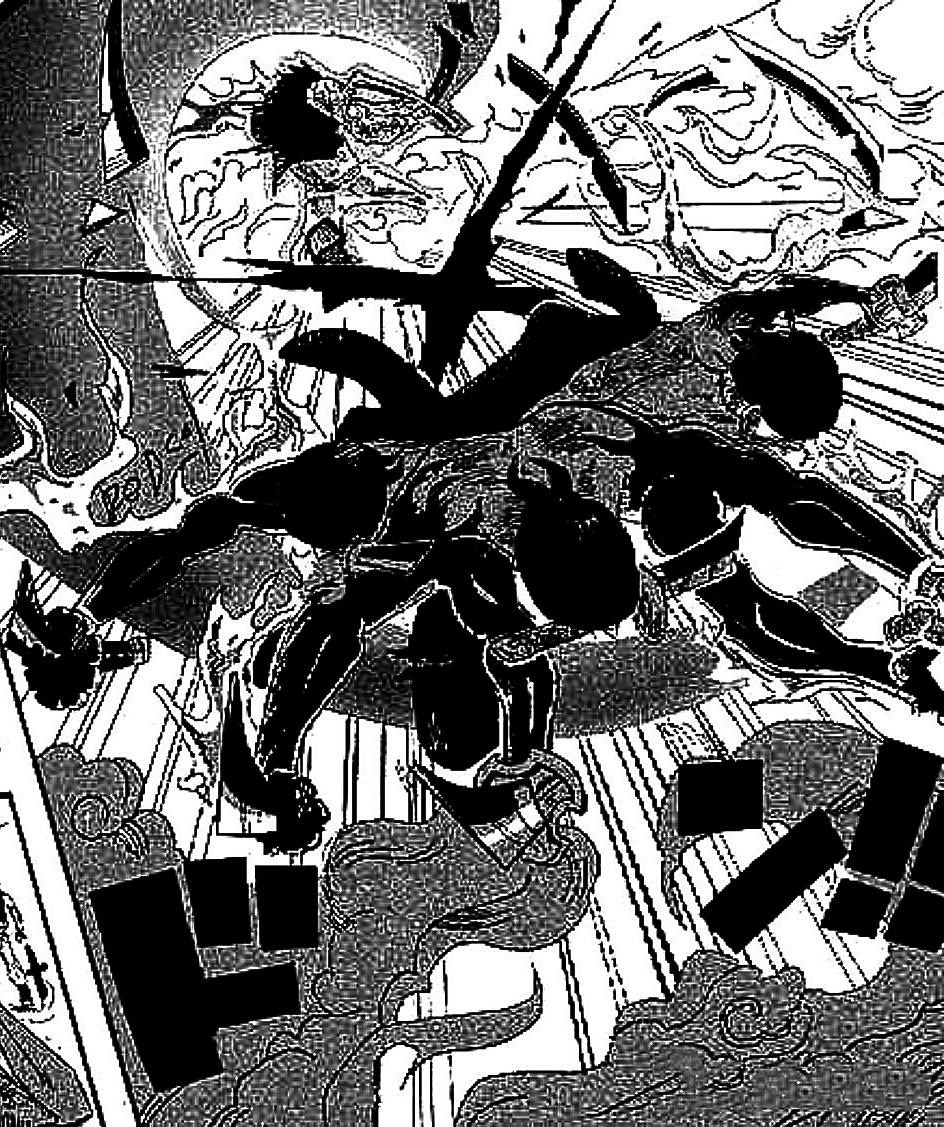 所以在最新話情報裏索隆直接沒有任何保留,帶上頭巾,三刀流啓動,釋放出霸王色和武裝色兩種霸氣並纏繞在刀上!索隆爲了以最快的速度幹掉麒麟戈姆聖,直接動用了自己的最強大招【鬼氣·九刀流·阿修羅】。