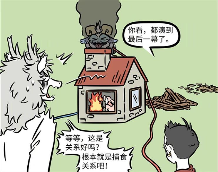 隨後鏡頭一轉來到徐哼唧和饕餮這裏,不知什麼時候,徐哼唧又建起一座房子保護自己,而饕餮試圖進入房子,爲此他特意跑到煙囪那裏,準備順着煙囪進入房子