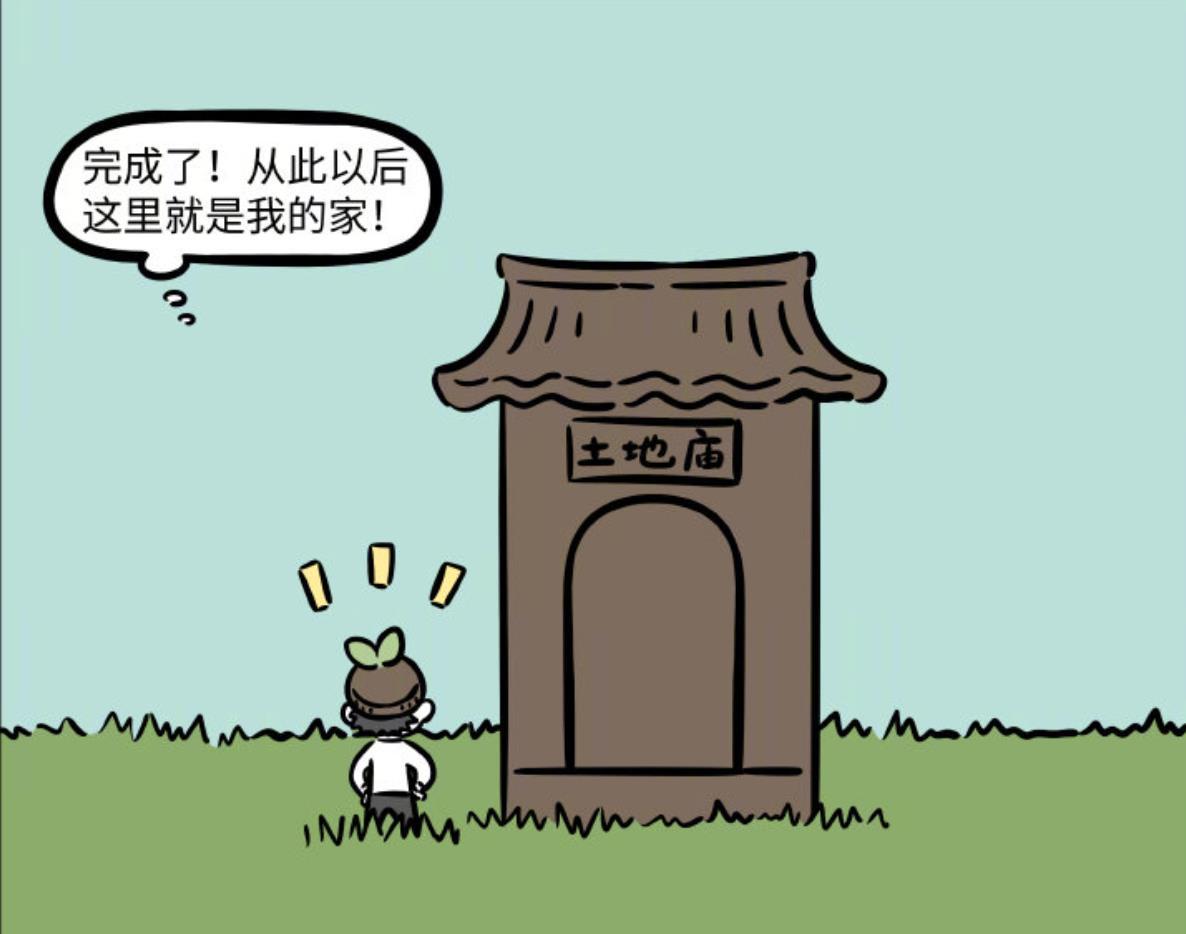 看着這座小小的土地廟,土地公十分開心,雖然只有背影登場,但還是可以看出他內心的喜悅,忍不住在心裏面感慨從今以後這裏就是他的家。
