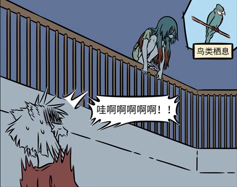 消失的敬畏正站在二樓的欄杆上睡覺,這是鳥類棲息的習慣,即使精衛已經變成人類,依舊下意識保持這一習慣