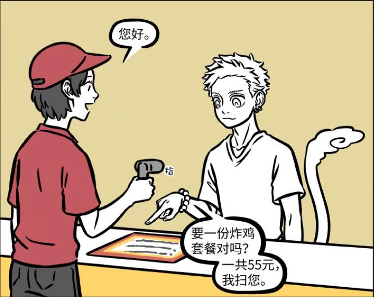 正如筋斗雲所預料的一樣,它憑藉孫悟空的外形成功進入餐廳,雖然嘴巴沒辦法說話,但卻憑藉手勢成功讓營業員知曉自己想要喫什麼,成功點了一個心心念唸的炸雞套餐。