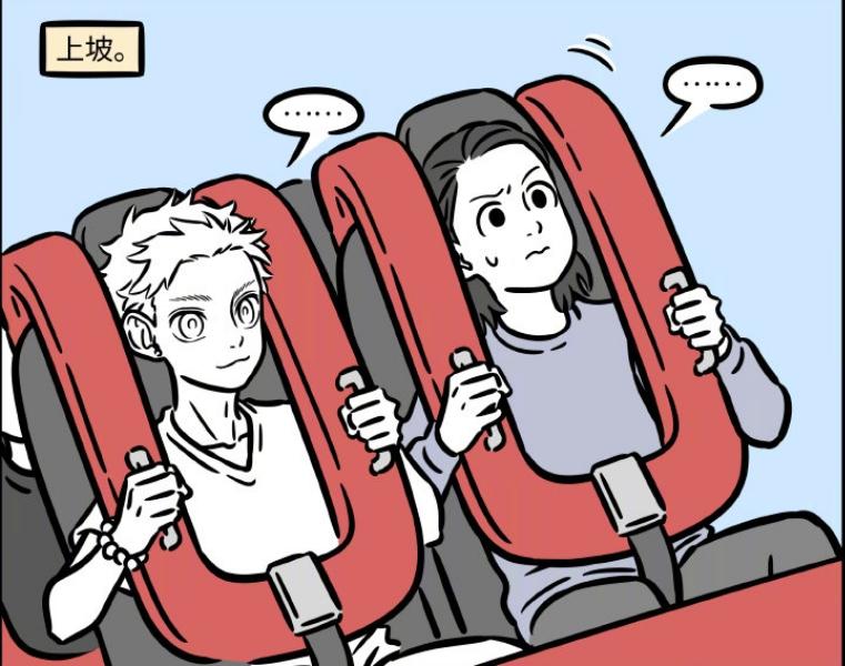 大概因爲是雲朵,亦或者是此時還是緩慢的上坡階段,筋斗雲表情沒有太大變化,依舊十分期待,而他旁邊的小姐姐則不同,一幅嚴陣以待的樣子,肉眼可見的緊張。