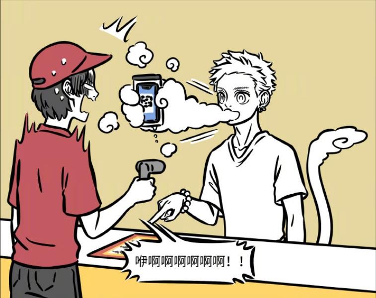 筋斗雲本人沒有感覺,但營業員本人卻被結結實實地嚇了一跳,估計他從來沒有見過從嘴巴拿出手機的人,忍不住尖叫起來,顯然已經忘記了要給筋斗雲收款。