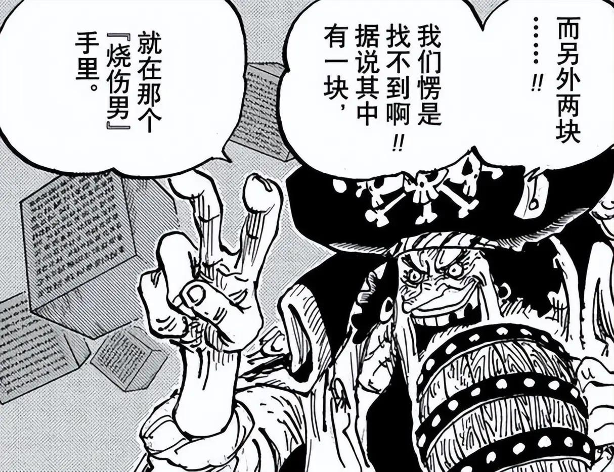 值得一提的是,燒傷男手中持有一塊路標歷史正文。目前已知,大媽擁有一塊,和之國留存一塊,佐烏島也有一塊。如此一來,路飛他們只要找到燒傷男,就有可能集齊四塊路標歷史正文。屆時,由羅賓解讀文字內容,娜美依據記載繪製線路,他們便有望前往最終之島——拉夫德魯。