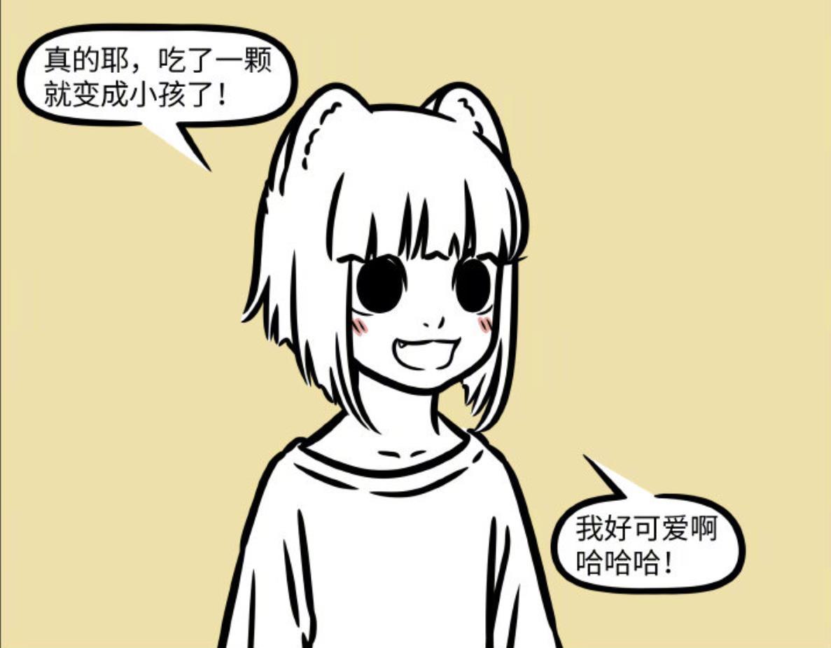 基於對糖果的好奇,九月也嘗試喫了一顆,很快她就變成小孩的模樣,幾乎就是縮小版的九月,原本的社畜感消失,取而代之的是可愛,就連九月本人都忍不住感慨自己現在變得好可愛
