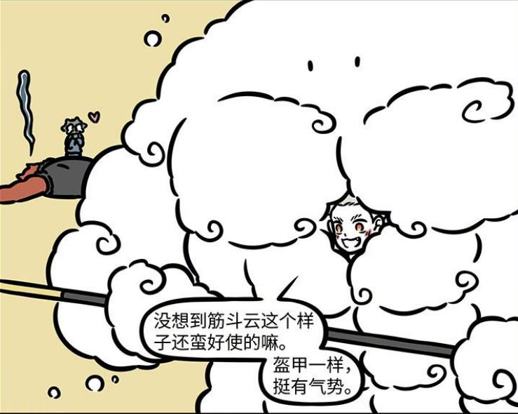 而其實這個巨大的雲朵妖怪不是別人,正是大家熟悉的筋斗雲,因爲筋斗雲體型巨大,所以孫悟空直接把龐大的筋斗雲當成鎧甲,自己則操縱筋斗雲進行戰鬥。