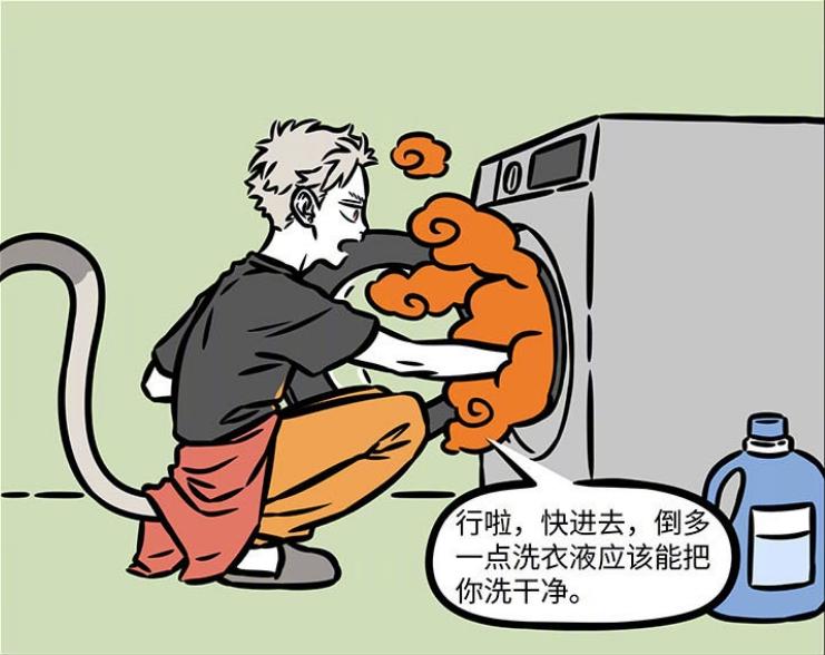 雖然嘴裏面十分嫌棄現在的筋斗雲,但孫悟空的行爲還是十分老實,直接把筋斗雲一整個塞進洗衣機裏面。