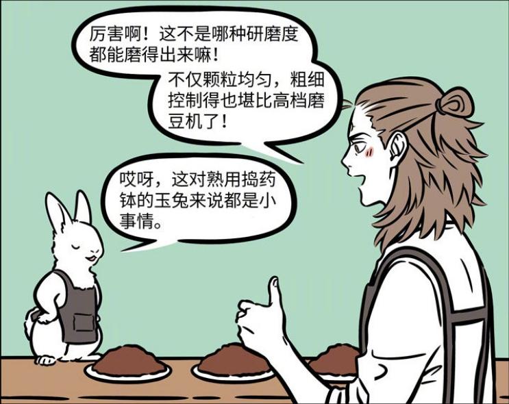 而遇玉兔球球則是一臉淡定表示這和搗藥差不多,對於玉兔來說搗藥幾乎是刻進骨子裏面的技能,因此幾乎是瞬間他便完成了咖啡豆的研磨工作。