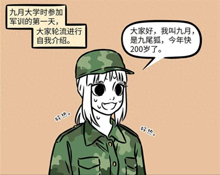 在《非人哉》故事中,九月的成長軌跡和普通人一樣,經歷了從讀書到工作的過程,因此九月自然也經歷了大學時候的軍訓