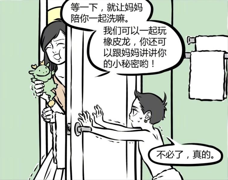但要知道哪吒雖然外表是小孩,但其實已經活了上千年,面對大士一同洗澡的邀請哪吒嚴詞拒絕,用盡全身力氣堵門。