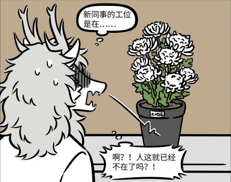 這天敖烈準備和新同事打招呼,來到新同事的工位,沒有看到新同事的身影,只看到一盆開的正好的白菊花,花盆上面還寫着土地公的名字。