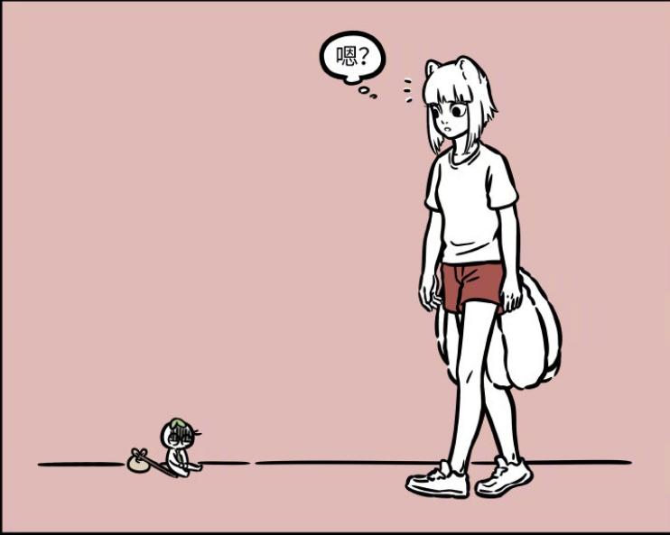 就在土地公沮喪的時候,九月走了過來,並且一眼就發現坐在地上的小人。