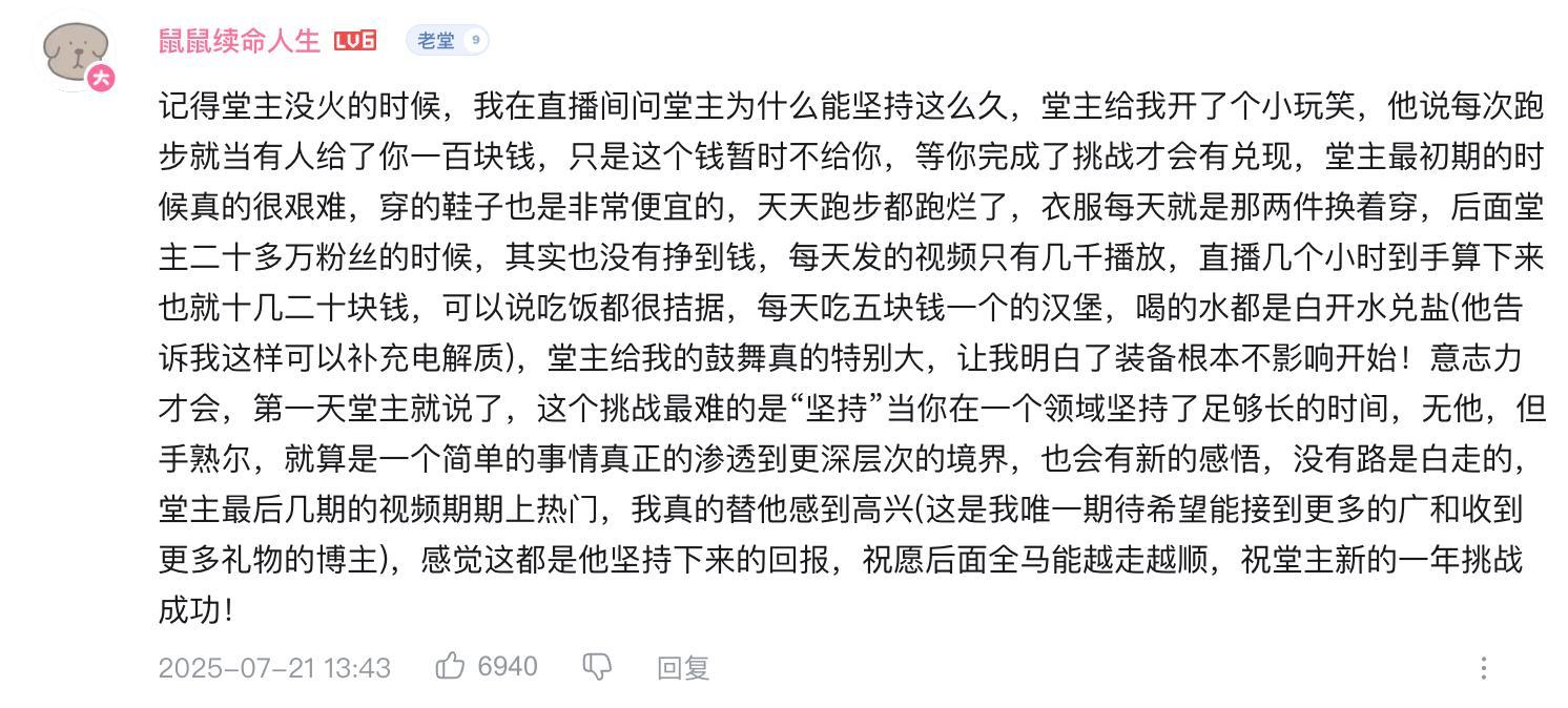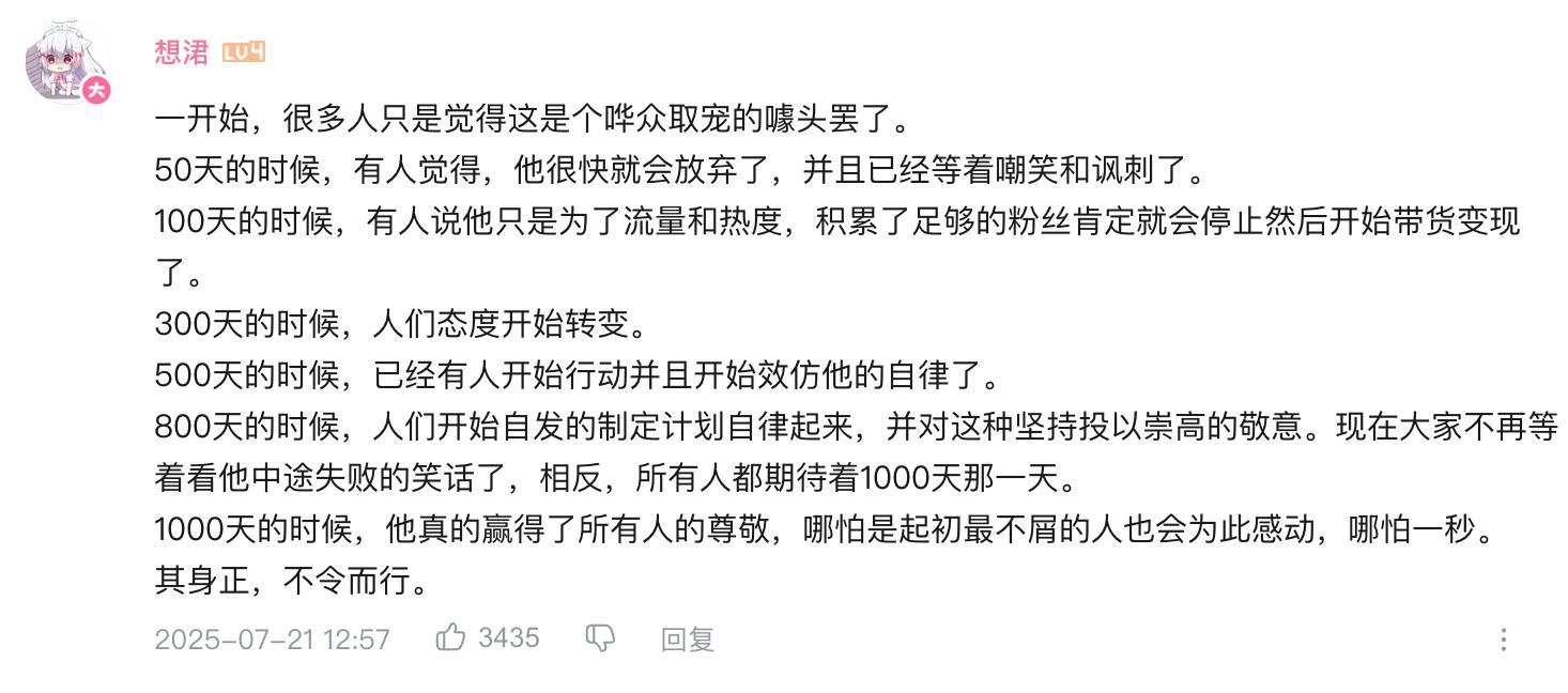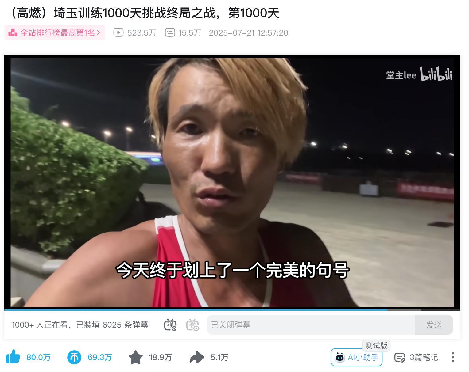 直至(2025年7月21日),他終於圓滿完成了自己的終局之戰——成功踐行“埼玉訓練法”。歷經1000天的魔鬼式訓練,“堂主lee”從氣質到身體都發生了翻天覆地的變化。整個人看上去愈發精神、幹練,精氣神飽滿,宛如獲得了新生。