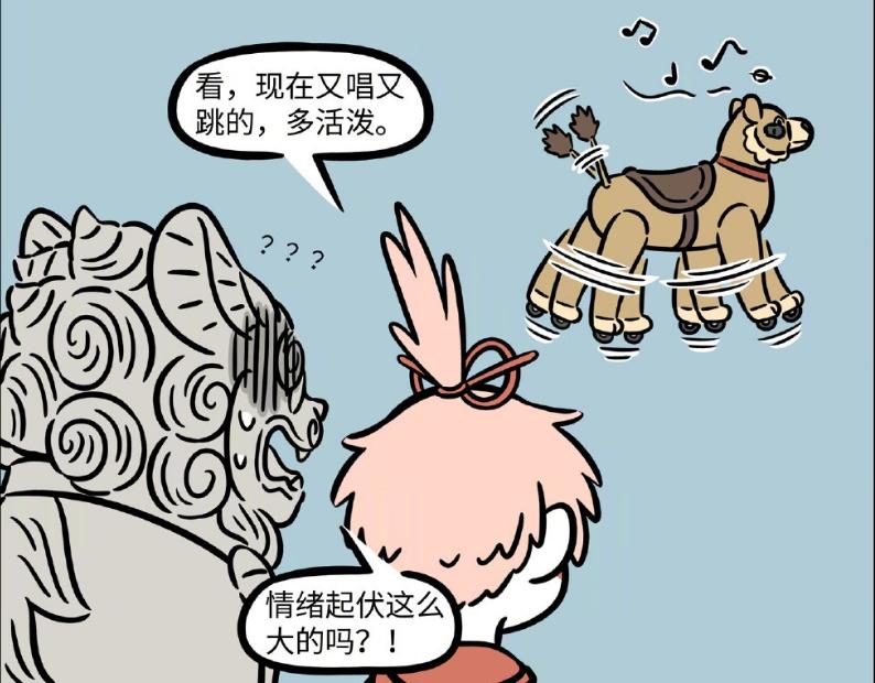 當看到這一幕的石獅子更加無奈,畢竟玩具小狗的情緒起伏也太大了,之前還沉默寡言,現在堪稱社牛,從石獅子的表情可以看出,月老這次所牽的紅線估計黃了。