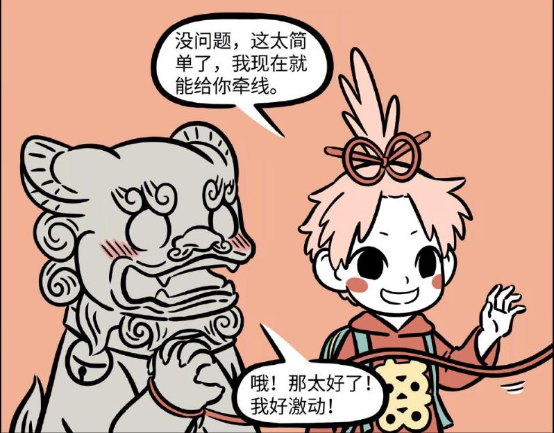 眼見自己的脫單問題被月老輕而易舉解決,石獅子肉眼可見的開心,不禁表示自己好激動。