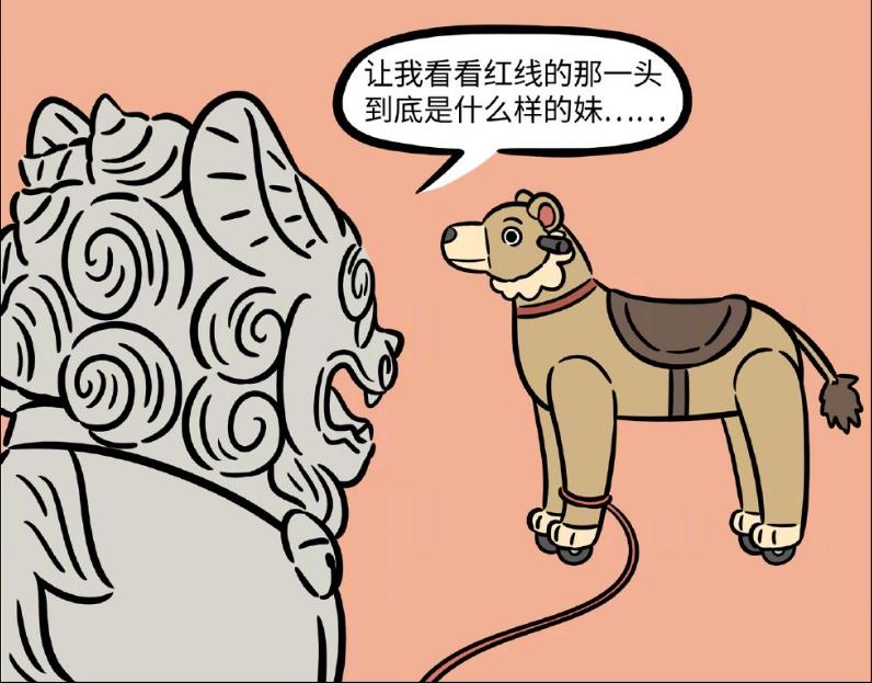 隨後一根紅線出現在石獅子的手腕上,紅線的另一頭則綁着月老給石獅子選擇的對象。