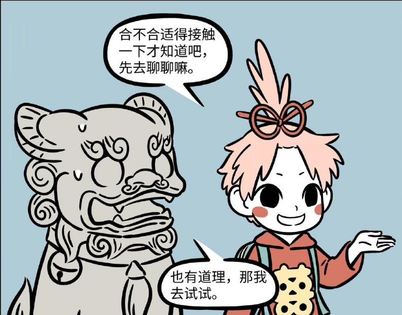 隨後石獅子主動搭話,大概是第一次和女生開啓交流,石獅子也有些侷促,只能說了一句【姑娘你好】。