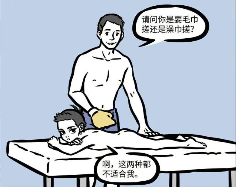搓澡大哥就如同面對所有顧客一樣,詢問哪吒是要用毛巾還是用搓澡巾,畢竟這兩者力度上還是有區別的。