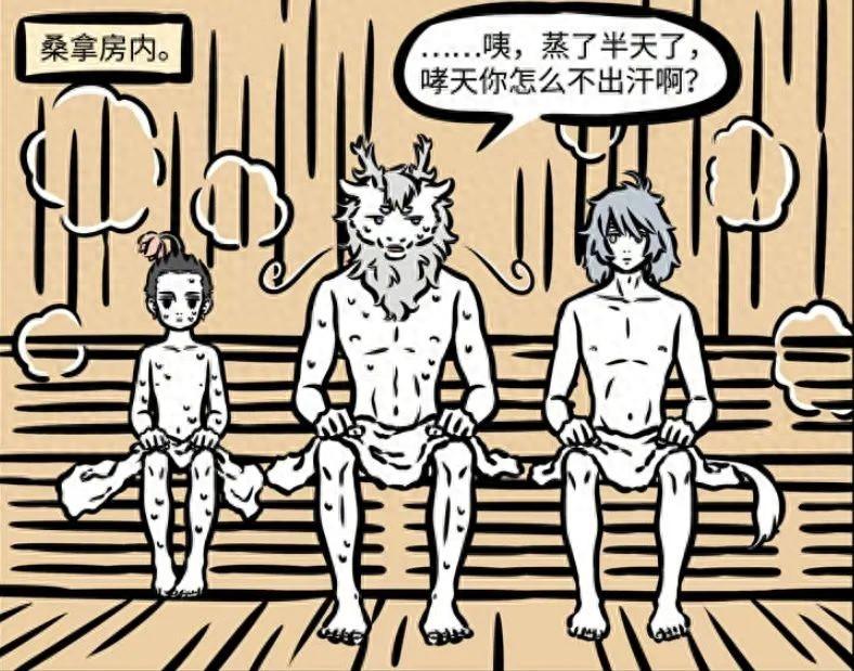 這天敖烈、哪吒和哮天犬一同去桑拿房蒸桑拿,面對同樣的溫度,三人的表現各不相同。