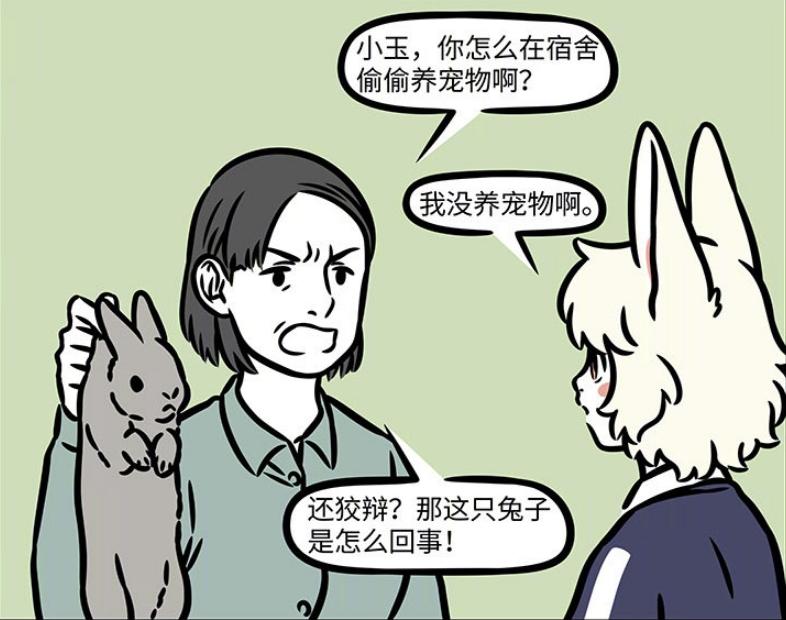 查寢老師手中提溜的灰色兔子不是小玉養的寵物,而是小玉的男朋友,畢竟小玉本人也是兔子,說這隻灰色兔子是她的男朋友倒也在情理之中