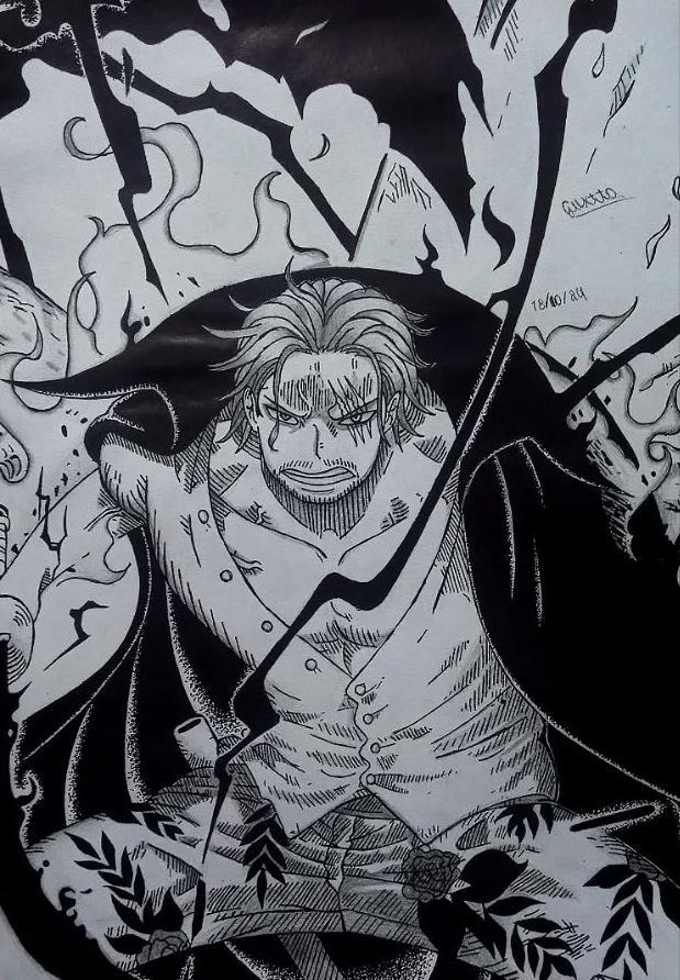 兩人隨後爆發大戰,黑鬍子果然有霸王色霸氣,這也符合遺傳!而香克斯展示出強大的劍術和霸氣,對抗黑鬍子的震震果實和暗暗果實!因爲香克斯不是能力者,暗暗果實所發揮的效果大大減低,反倒是成爲弱點,雙倍疼痛實屬難受至極。