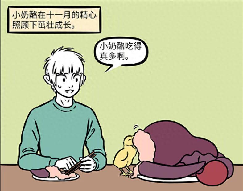此時的小奶酪頗有種無奈表示,十一月終於發現了,其實早在小奶酪憑藉一己之力解決掉一隻巨型蜈蚣,十一月就應該意識到這並不是一隻普通的小雞仔