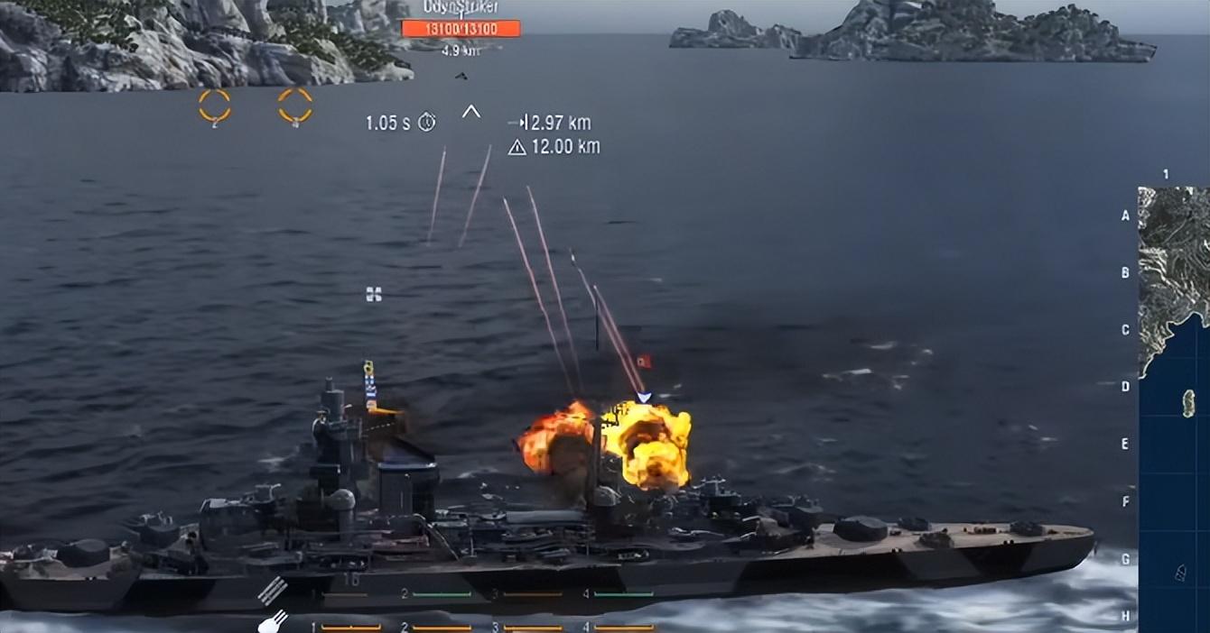 更關鍵的是,美因茨左右兩側各裝又2組五聯裝魚雷發射器,點出“重拳出擊”技能後,輕鬆秒殺行動模式中的AI戰列艦輕。玩家熟練後能用它的魚雷單刷一條線,就算不熟悉行動模式,跟着大部隊也能起到很好的輔助作用。