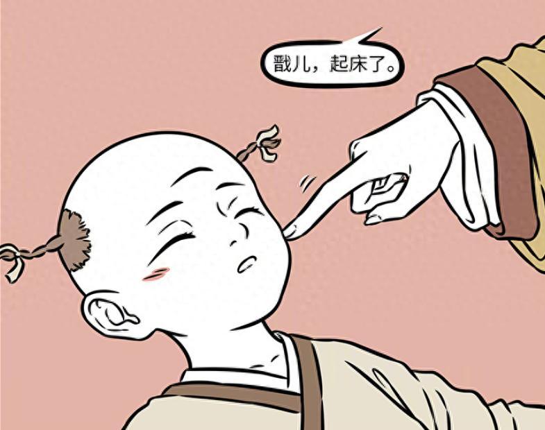 此時的楊戩還只是一個扎着羊角辮的小娃娃,此時的他正在睡覺,一隻手戳中了楊戩的臉蛋,十分親暱地叫着楊戩爲戩兒