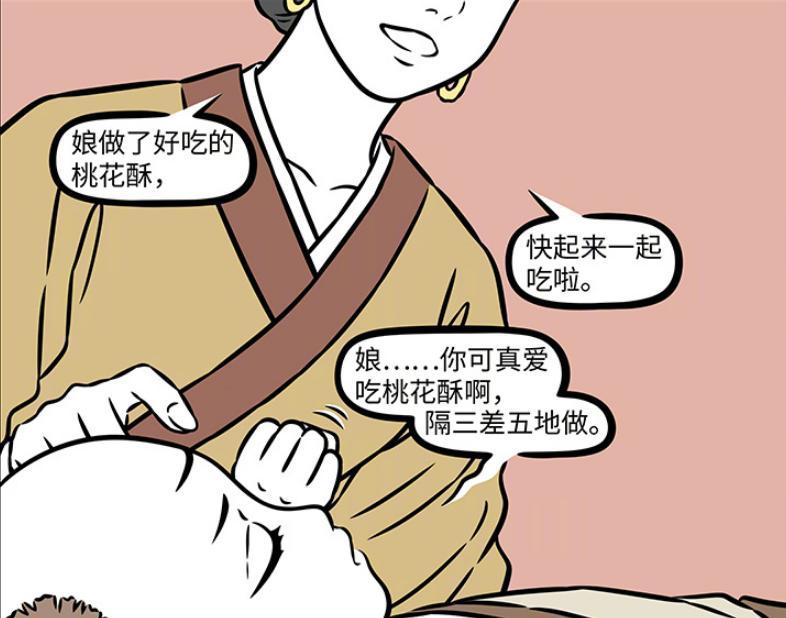 楊戩的母親十分親暱地叫醒楊戩,表示自己做了很好喫的桃花酥,趕緊起來一起喫