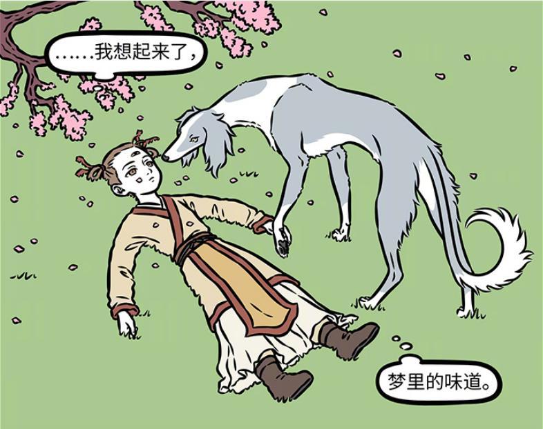 但這種美好沒有持續很久,楊戩就從睡夢中醒來,原來關於小時候的想象,不過是楊戩的一場夢,而此時的他恰好背哮天給舔醒