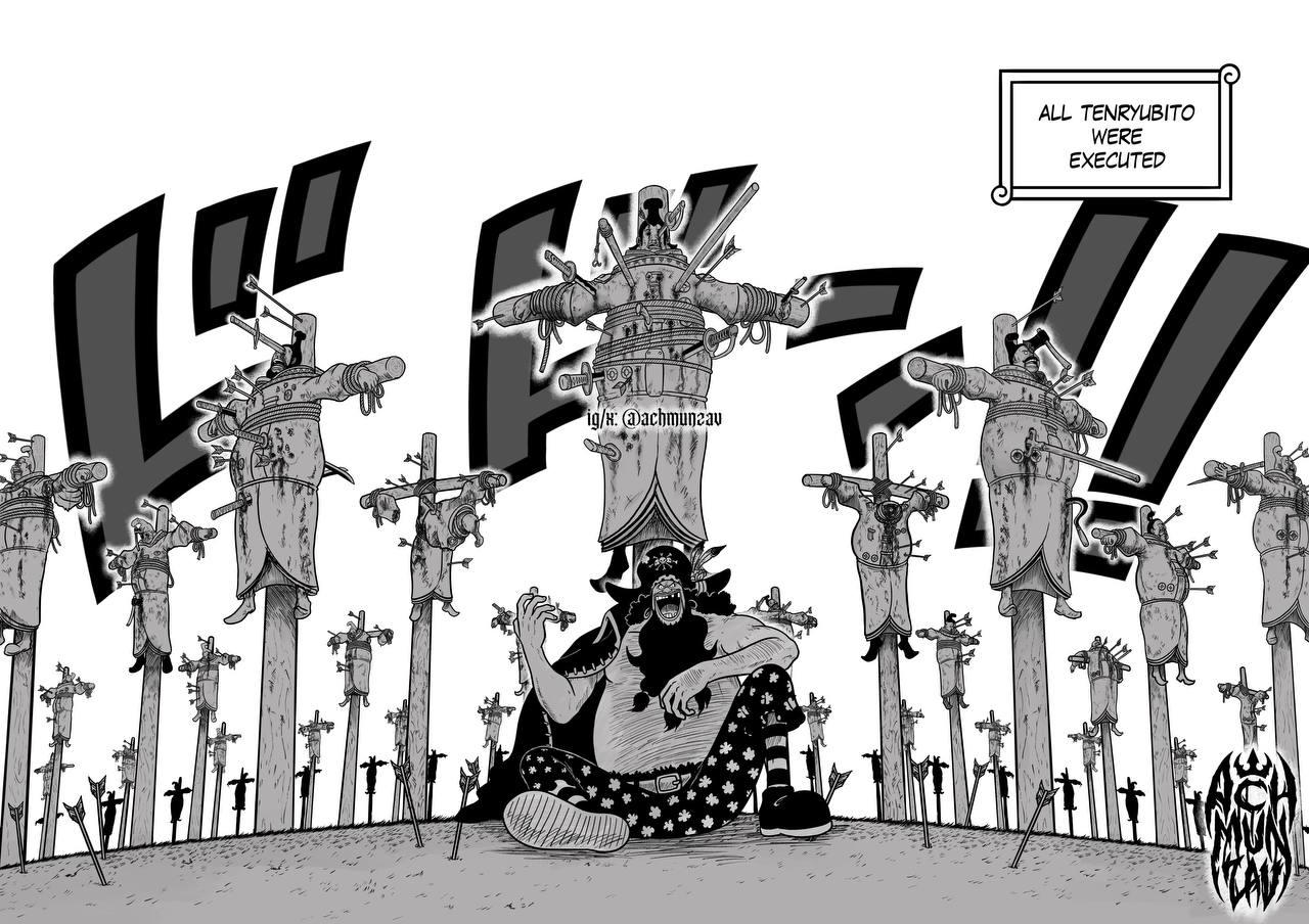 革命軍和黑鬍子都襲擊了聖地瑪麗喬亞!黑鬍子幹掉大量天龍人,用暗暗果實偷襲伊姆將其擊殺後,奪取她的惡魔形態能力!