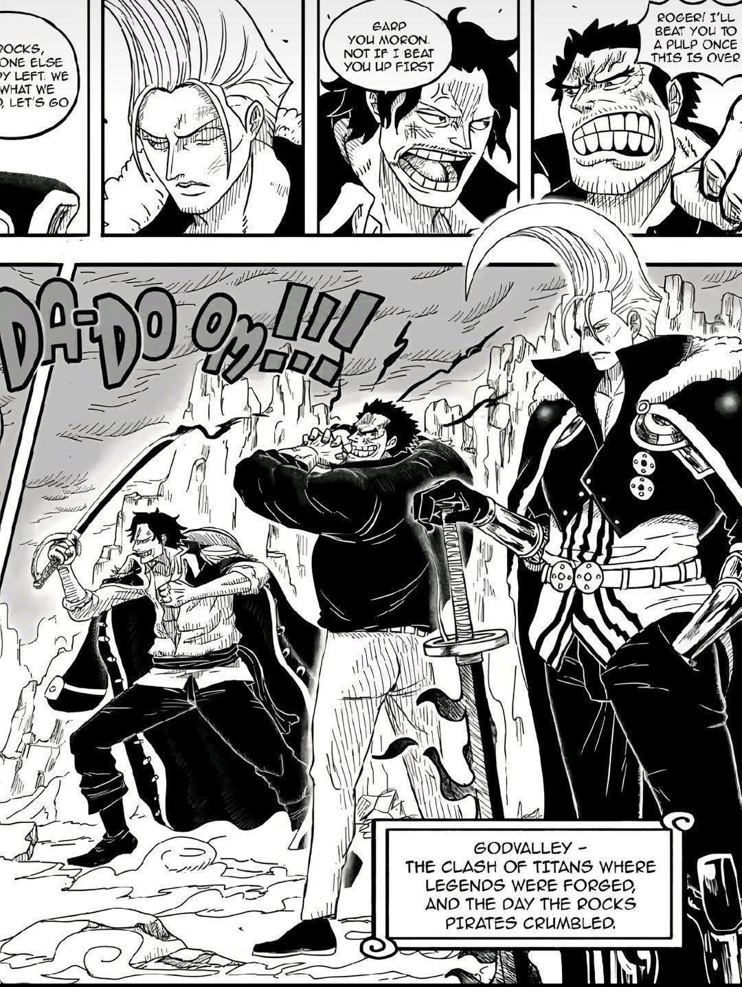 此故事的主角——洛克斯、哈拉爾德、羅傑與卡普,即將在這座島嶼上展開一場震驚寰宇的戰鬥,這場戰鬥必將改寫世界格局。卡普的出現,出乎了洛克斯與羅傑的意料。與此同時,一直追隨卡普的副官博加特也來到了此地。他此前從未展露過真正實力,唯一一次出手還是在扉頁故事中,那一舉動竟將克比嚇得呆若木雞。然而,僅此一次便足以彰顯他的非凡之處,畢竟能追隨卡普的人,無一不是強者。