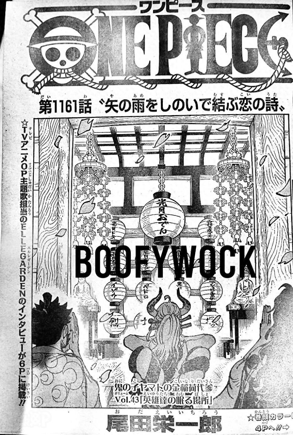 扉頁故事是大和、桃之助、錦衛門三人在祭拜討伐凱多中領盒飯的武士們,包括光月御田、阿修羅童子、以藏等等!爲什麼錦衛門被凱多錘那麼多次都不死?噁心!