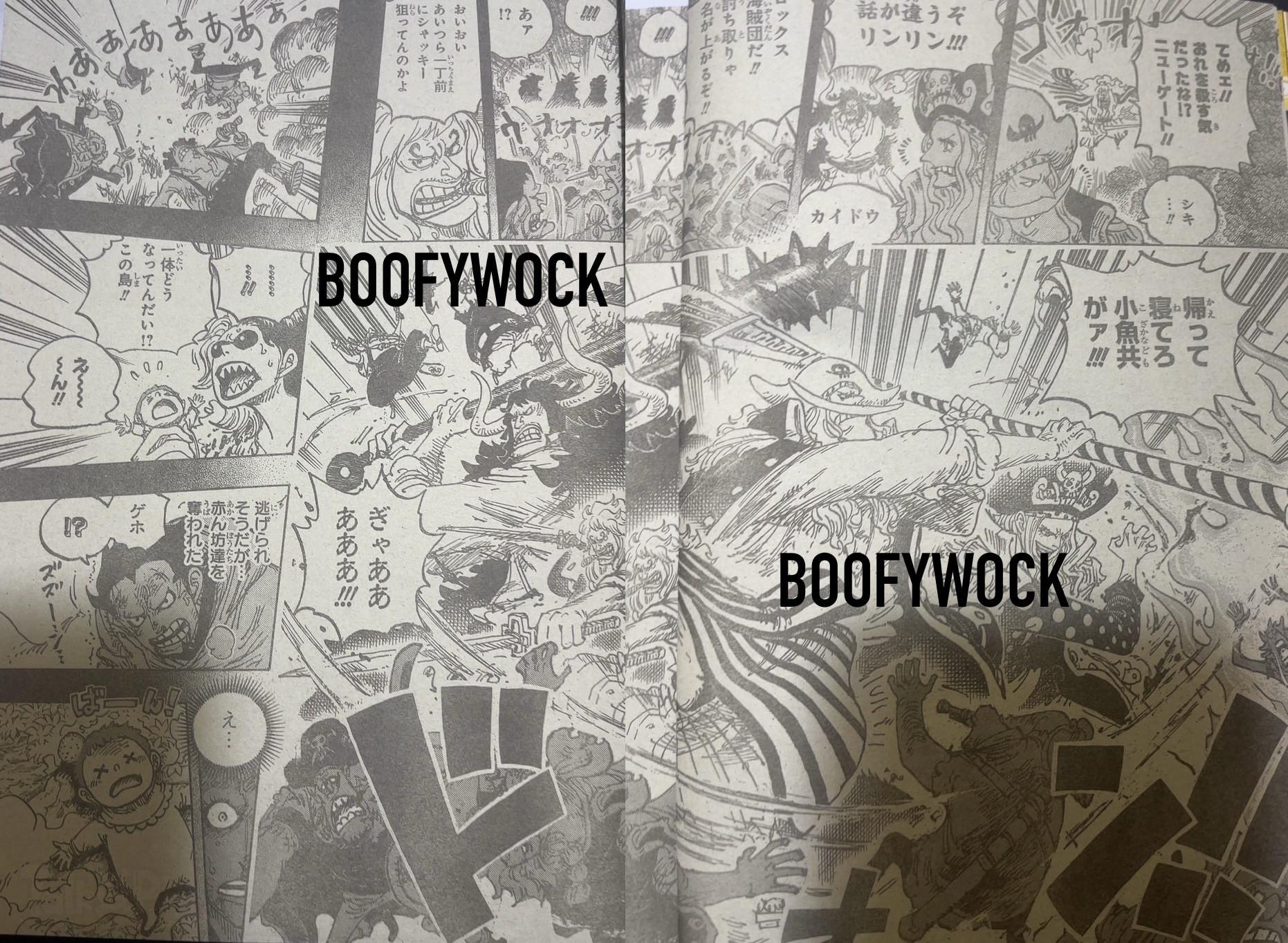 而在一張非常壯觀的跨頁裏,出現了白鬍子、玲玲、凱多、金獅子4人!他們在對付叛變洛克斯海賊團的海賊們!所以他們不得不聯手來對付這羣雜魚,這也是少有的4位頂級強者聯手的畫面,其中2位傳說大海賊,3位四皇。